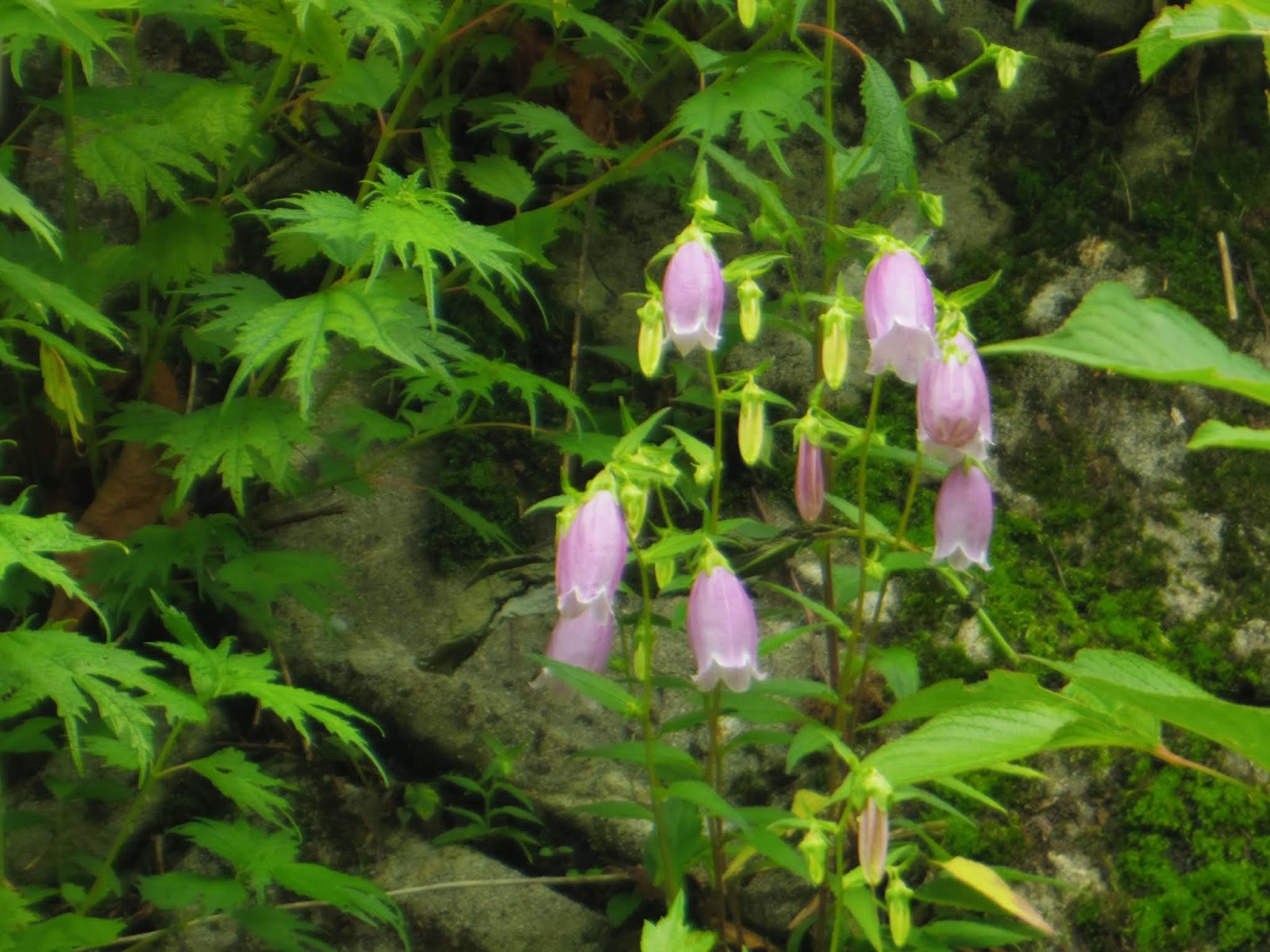 | 遊歩道には、昔はホタルを入れる虫籠に代用したという ヤマホタルブクロ |