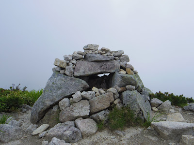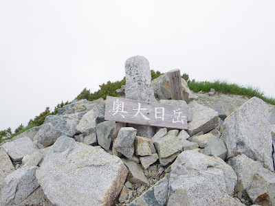 | あっという間にガスに覆われてしまい、 奥大日岳の頂上からは何も見えず。。。 |