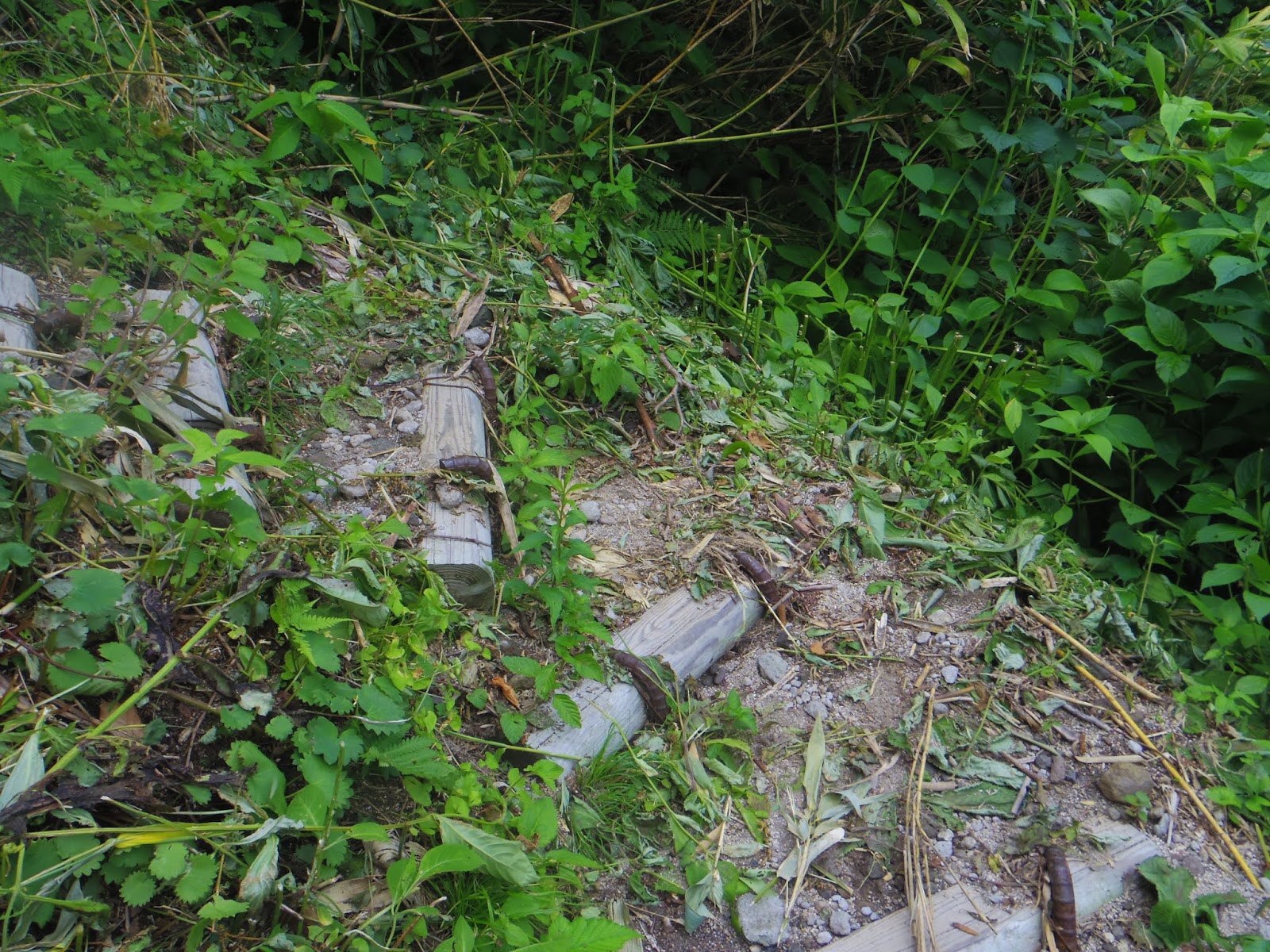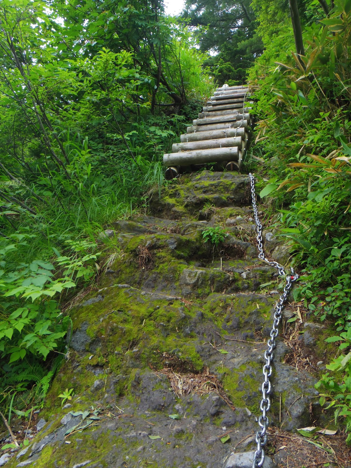 | 木道が終わると急な下り坂が続きます。 私の足は限界に近づいているけど大丈夫なのか!? |