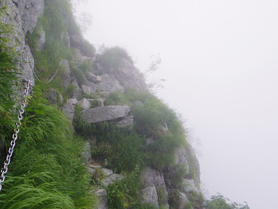 | そんなガスの中、鎖場や梯子を使って下りる場所も出てきます。 雪が残っている場所や道に迷いそうな場所もあるので要注意です⚠ |