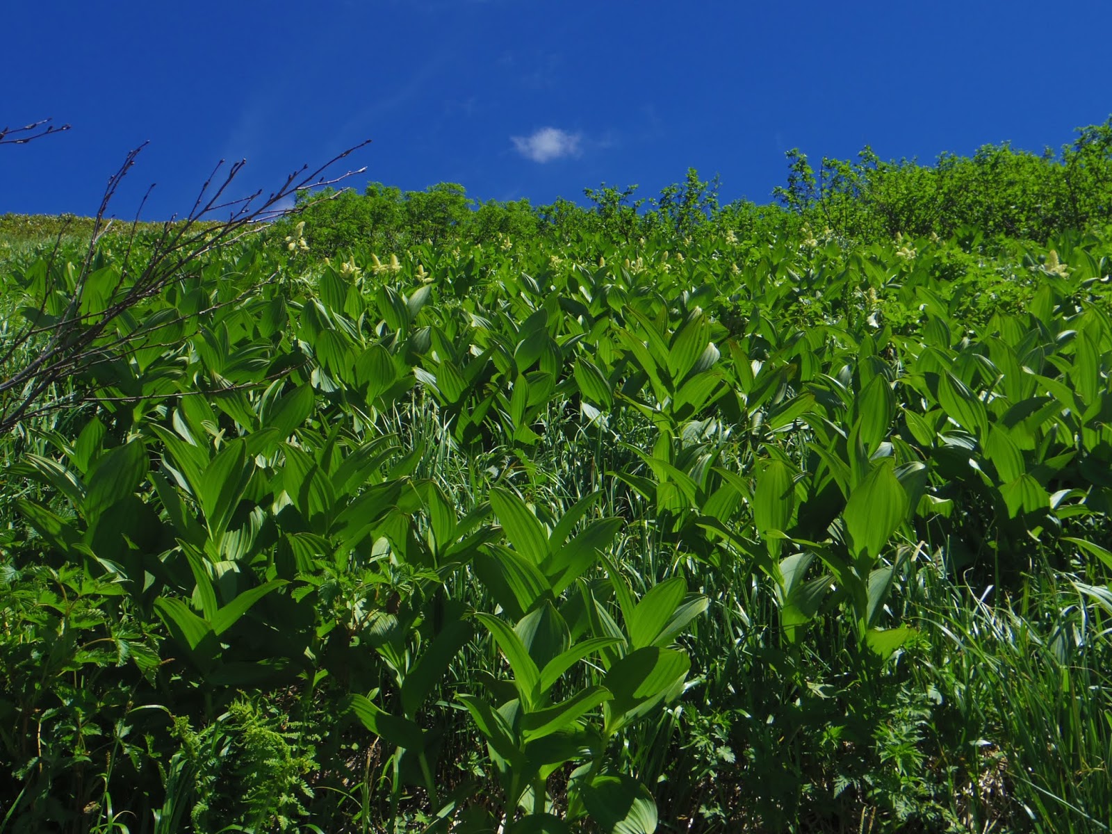 | 稜線ではチングルマやイワカガミ等のお花が沢山🌼 コバイケイソウも至る所に葉があり、これから沢山咲きそうです |