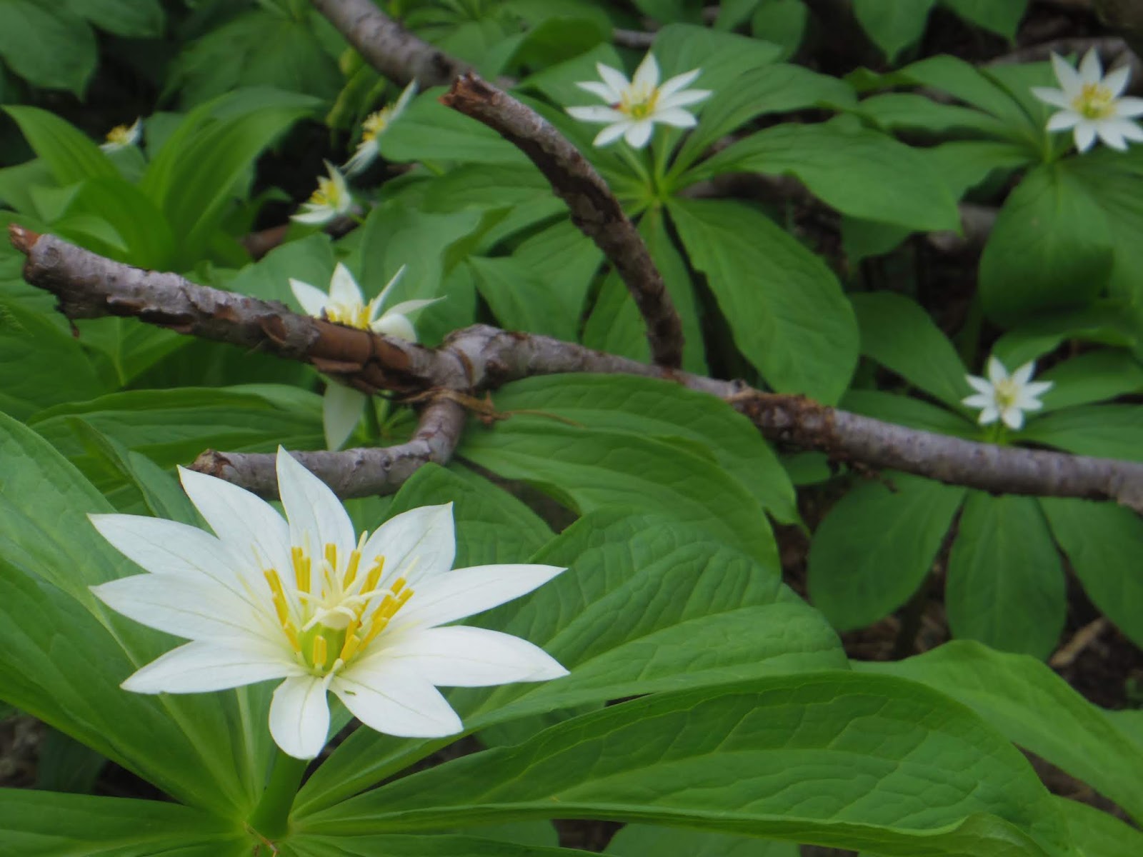 | 群生するキヌガサソウ!!何ヶ所か群生している場所がありました |