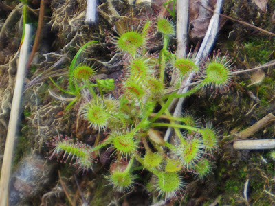 | 木道ではワタスゲ、イワイチョウ、タテヤマリンドウ、 アカモノ、トキソウなどが咲いていますが、 この日一番の感動は、初めてみる食虫直物のモウセンゴケ |